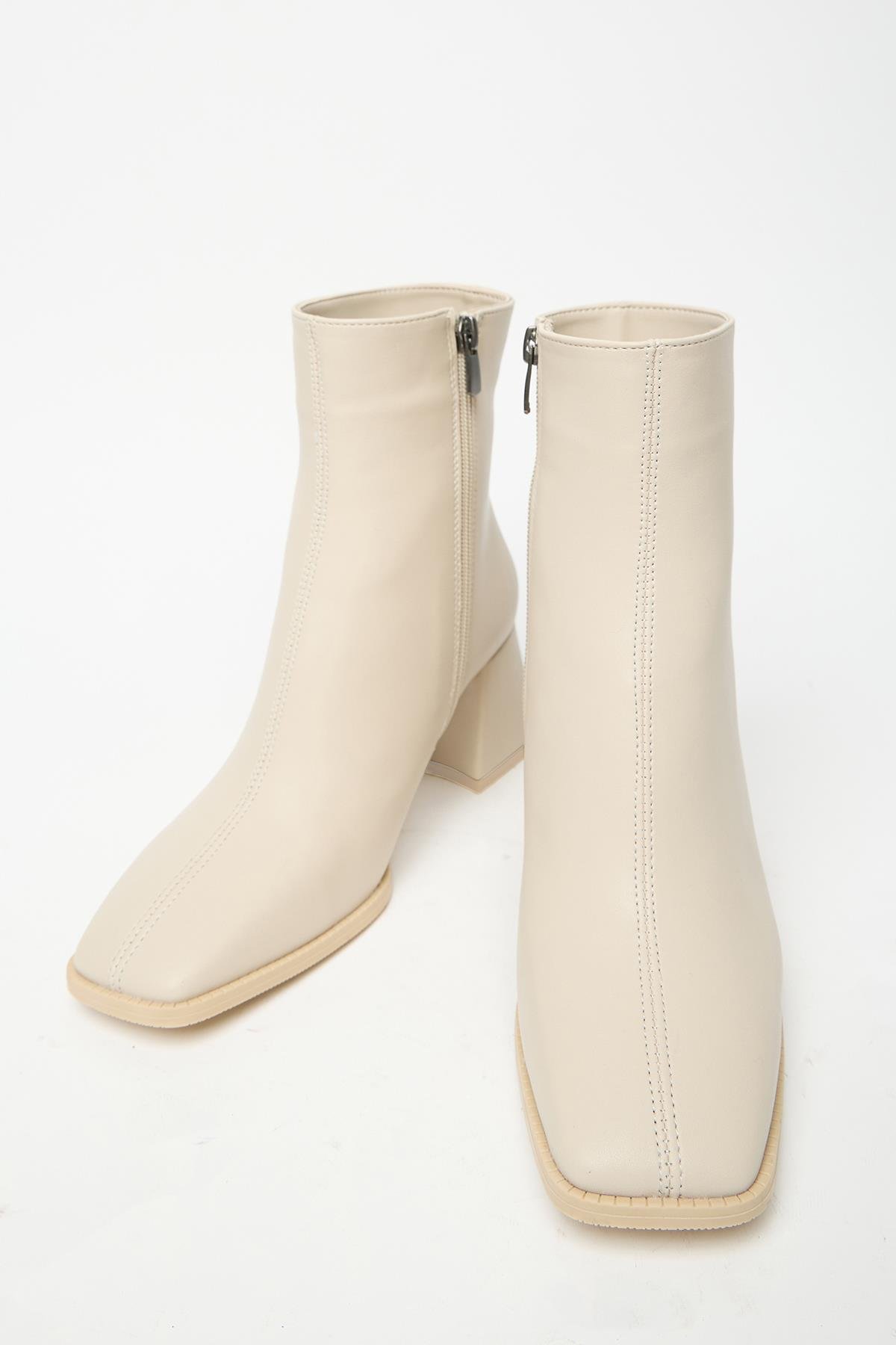 Kadın Bej Bot & Bootie Küt Burun Topuklu Kontrast PU Deri Fermuarlı Şık