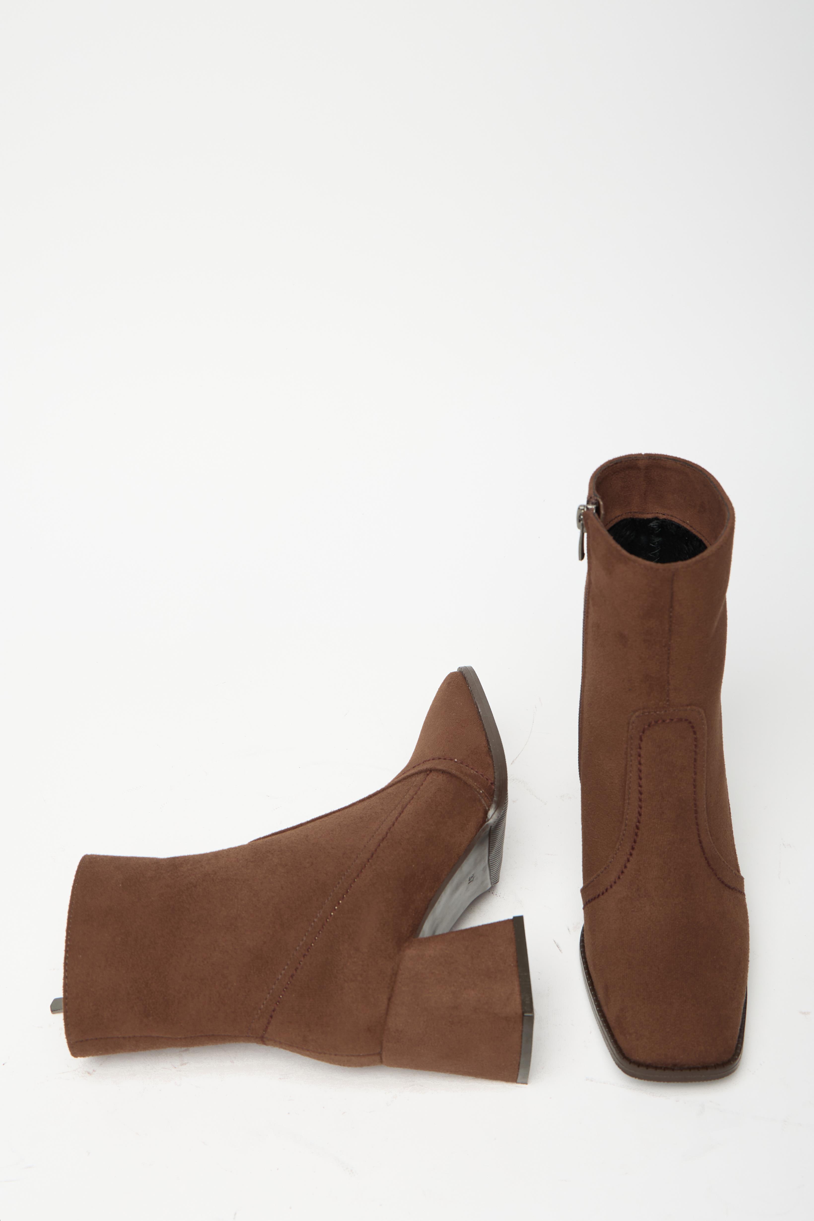 Kadın Kahverengi Süet Küt Burun Topuklu Bot & Bootie – Fermuarlı Günlük Şık